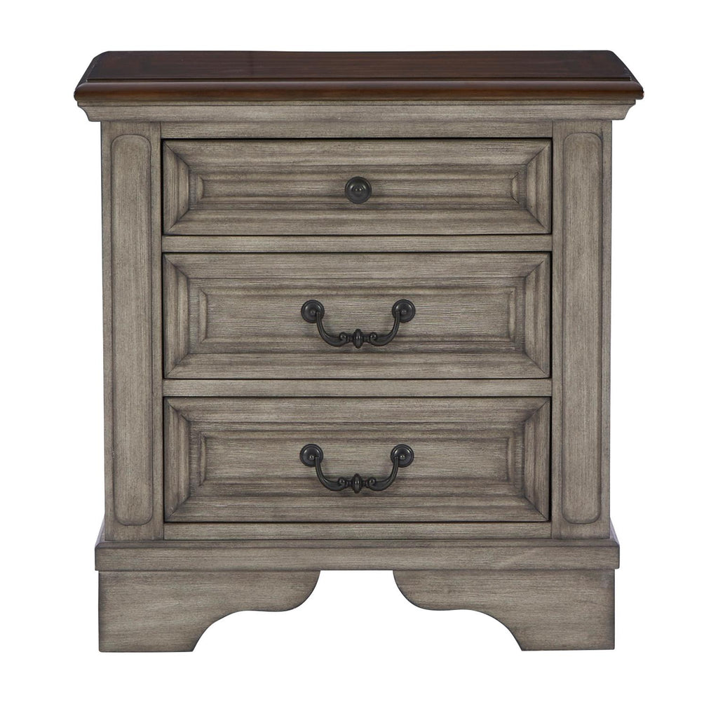 • Two-tone finish; antiqued gray body with a rich, deep walnut brown finish on top