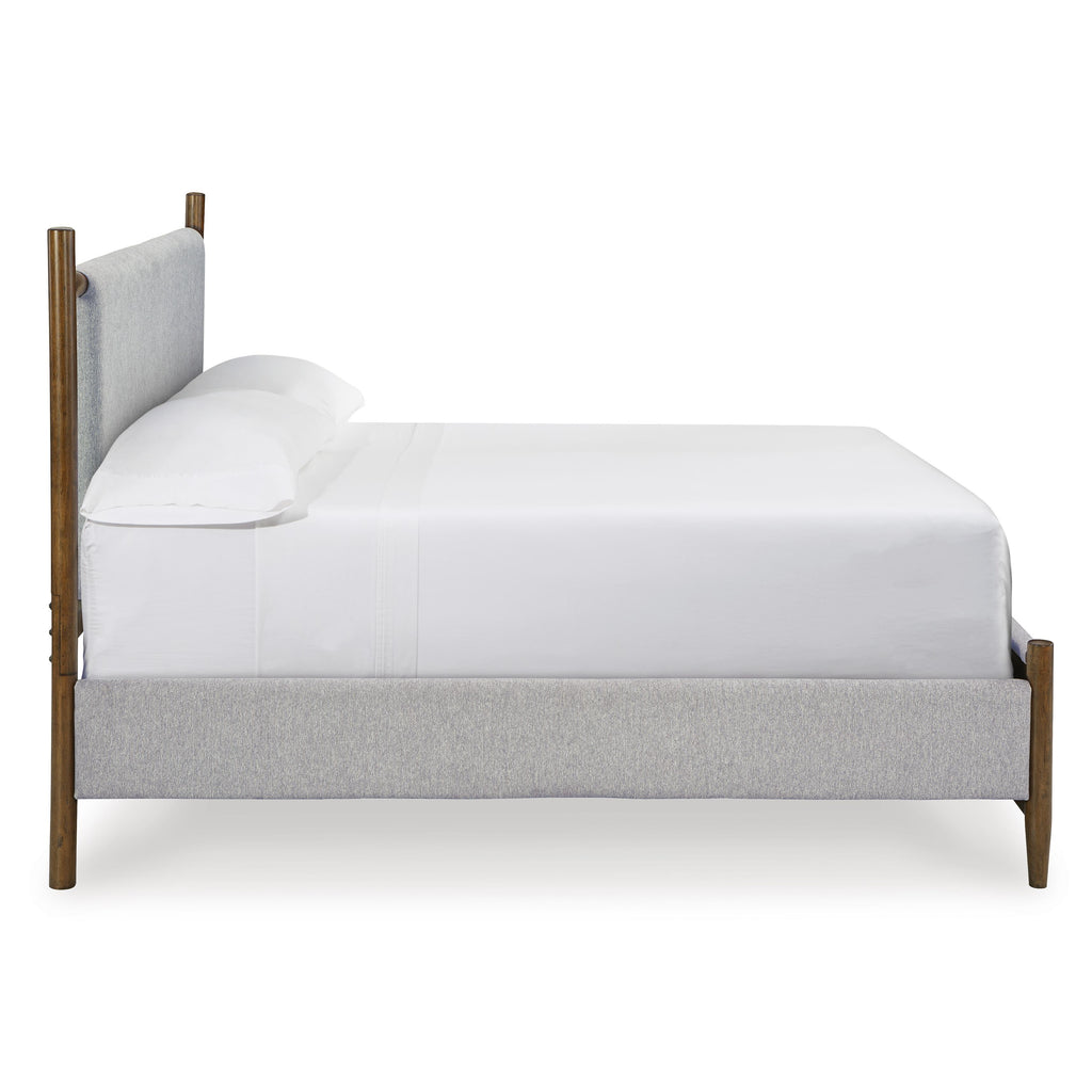 • Includes upholstered panel headboard and footboard