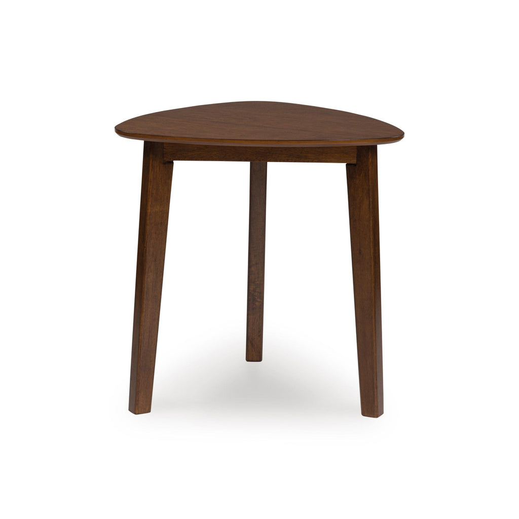 A refreshed take on retro aesthetics. This table set adds an air of playful simplicity to your home, capturing the... A refreshed take on retro aesthetics. This table set adds an air of playful simplicity to your home, capturing the architectural language of mid-century stylings. Subtly dynamic in design, the tables invite the eye with geometric tops. A casual, yet timeless, medium brown finish completes this study in form and function. View more