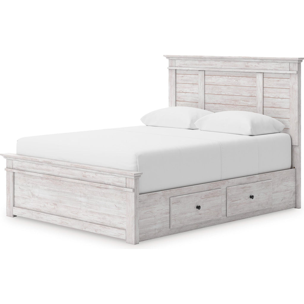• Includes panel headboard, panel footboard, under bed storage unit, platform rails and roll slats