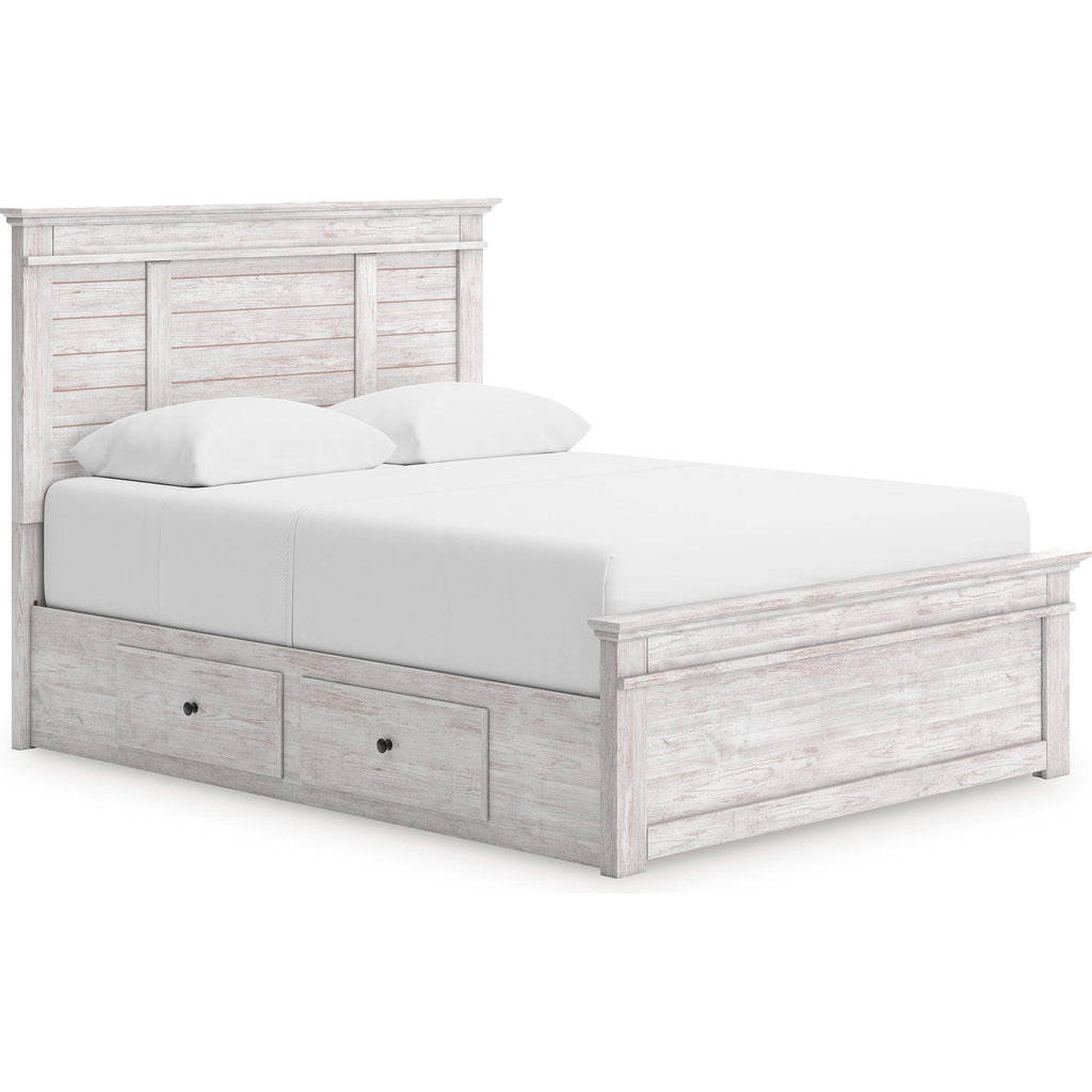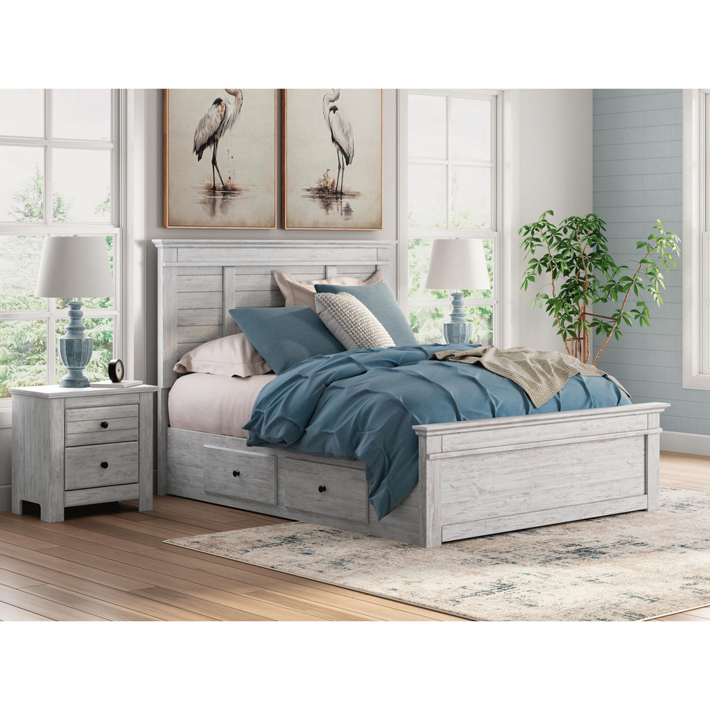 • Includes panel headboard, panel footboard, under bed storage unit, platform rails and roll slats