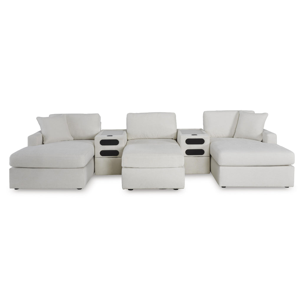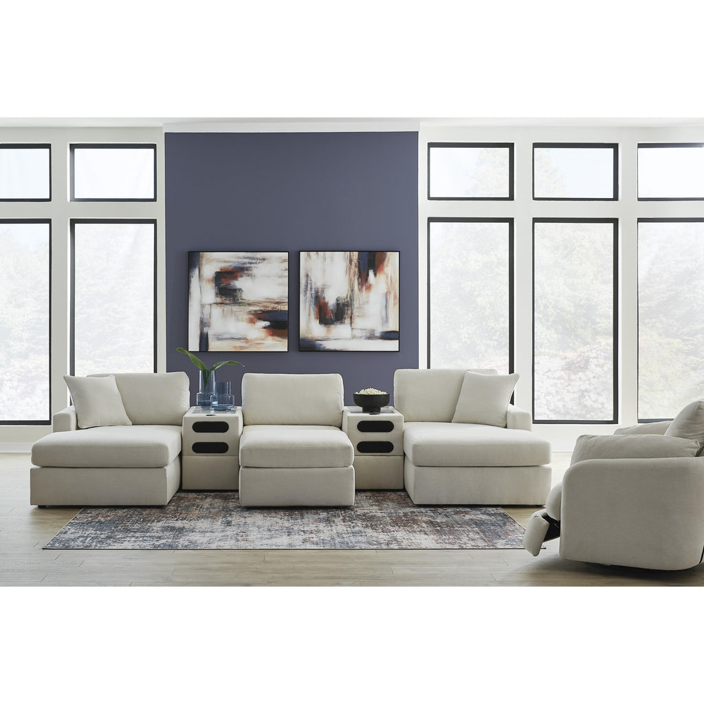 • Includes 5 modular pieces: left-arm facing corner chaise, 2 audio consoles with storage, armless chair and right-arm facing corner chaise