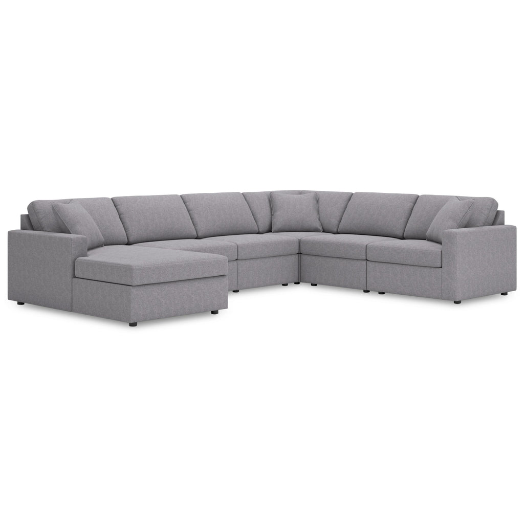 • Includes 6 modular pieces: left-arm facing corner chaise, 3 armless chairs, wedge and right-arm facing corner chair