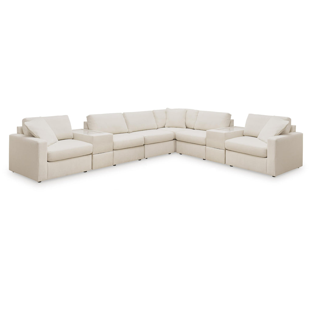 • Includes 8 modular pieces: left-arm facing corner chair, 3 armless chairs, 2 consoles with storage, wedge and right-arm facing corner chair