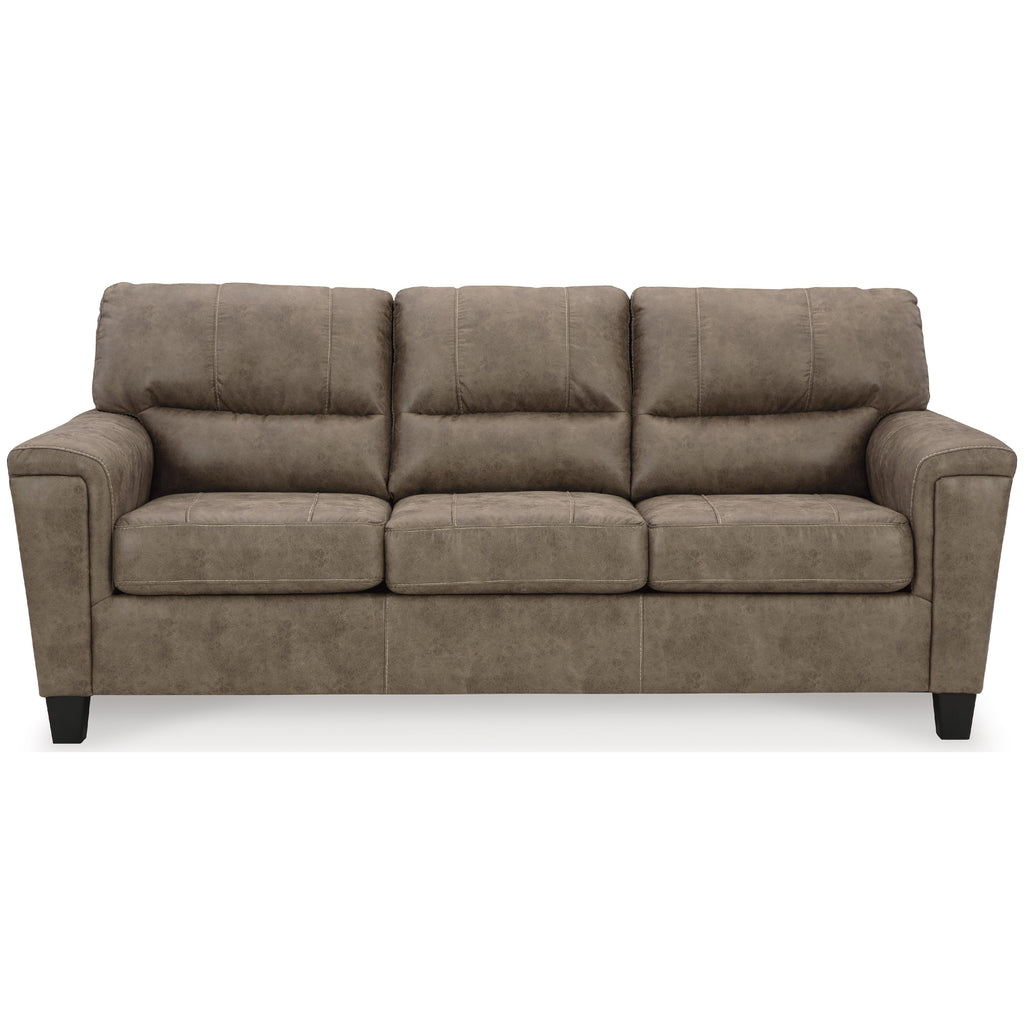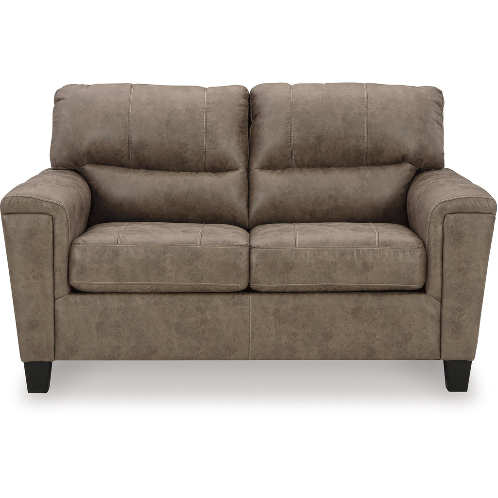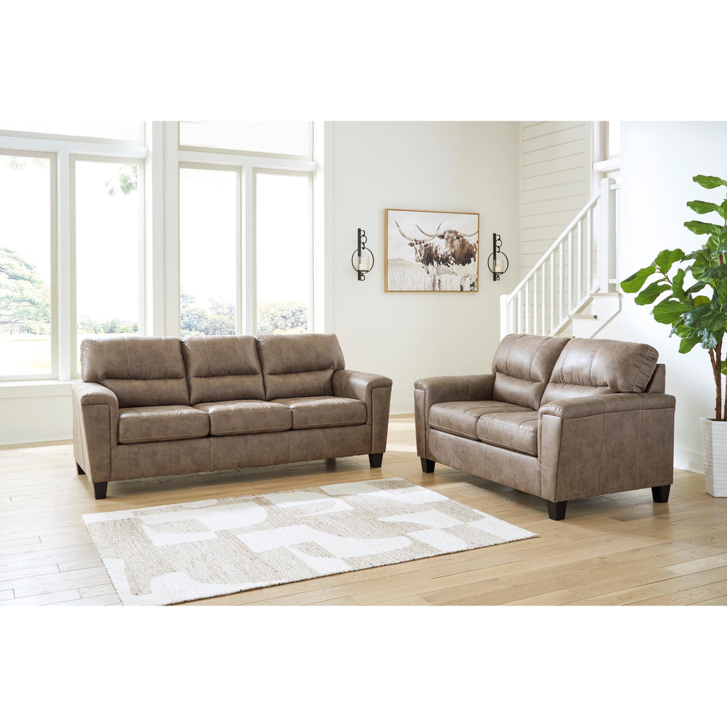 This decidedly modern Navi 2-piece living room set proves less is more, bringing simply inviting style to your living room.... This decidedly modern Navi 2-piece living room set proves less is more, bringing simply inviting style to your living room. Take the guesswork out of decorating—its warm faux leather has a universal appeal, pairing with casual and contemporary aesthetics alike. All you need to do is sit back, relax and enjoy the comforts of home. This set includes a sofa and a loveseat. View more
