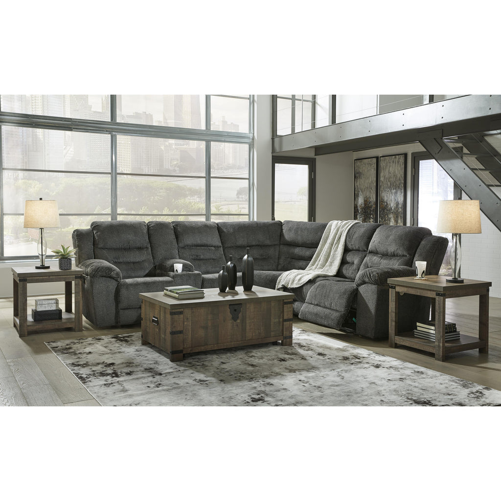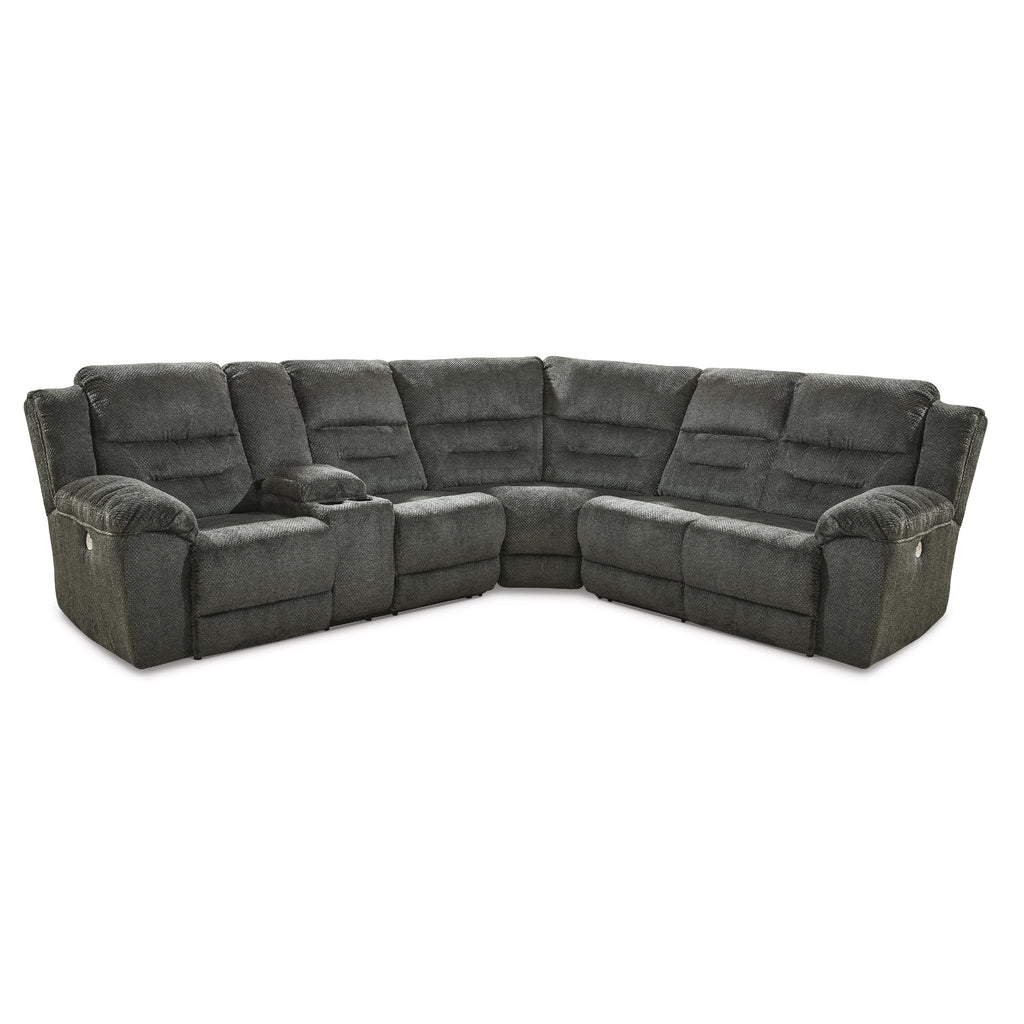 • Includes 3 pieces: left-arm facing power reclining loveseat with console, wedge and right-arm facing power reclining loveseat