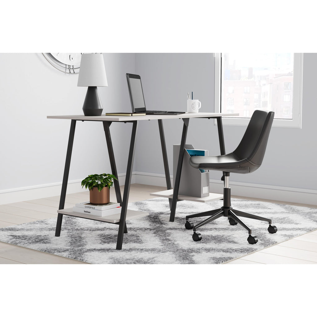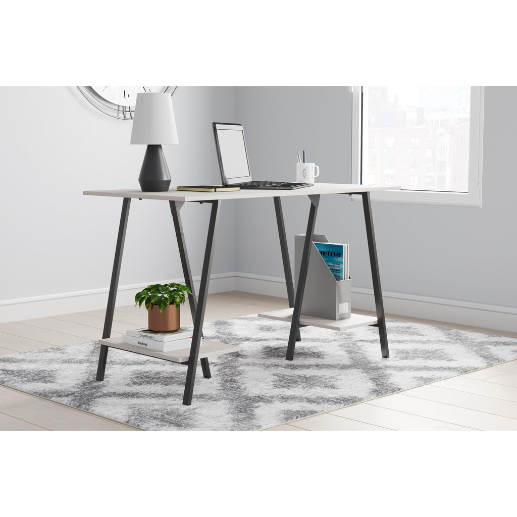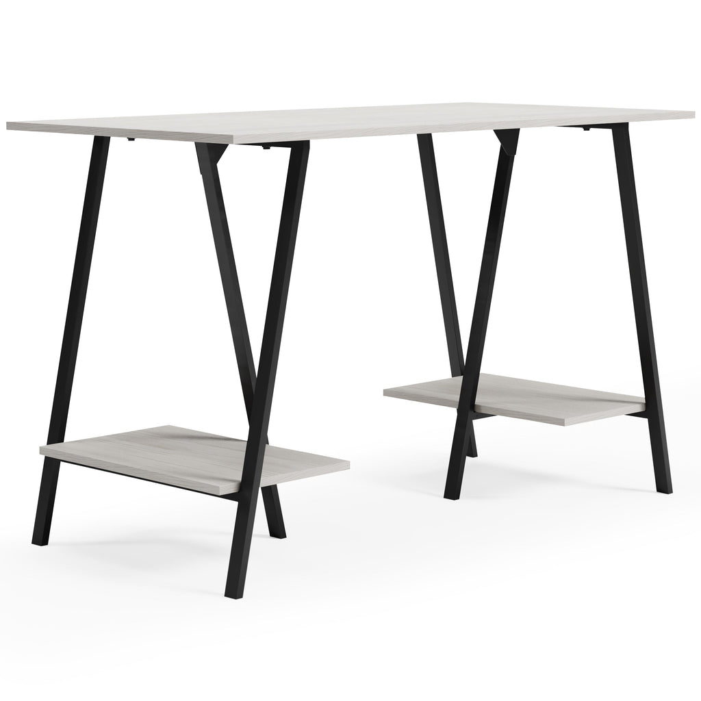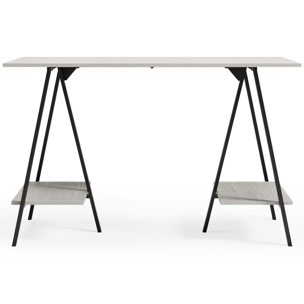 • Sawhorse legs with gunmetal finish