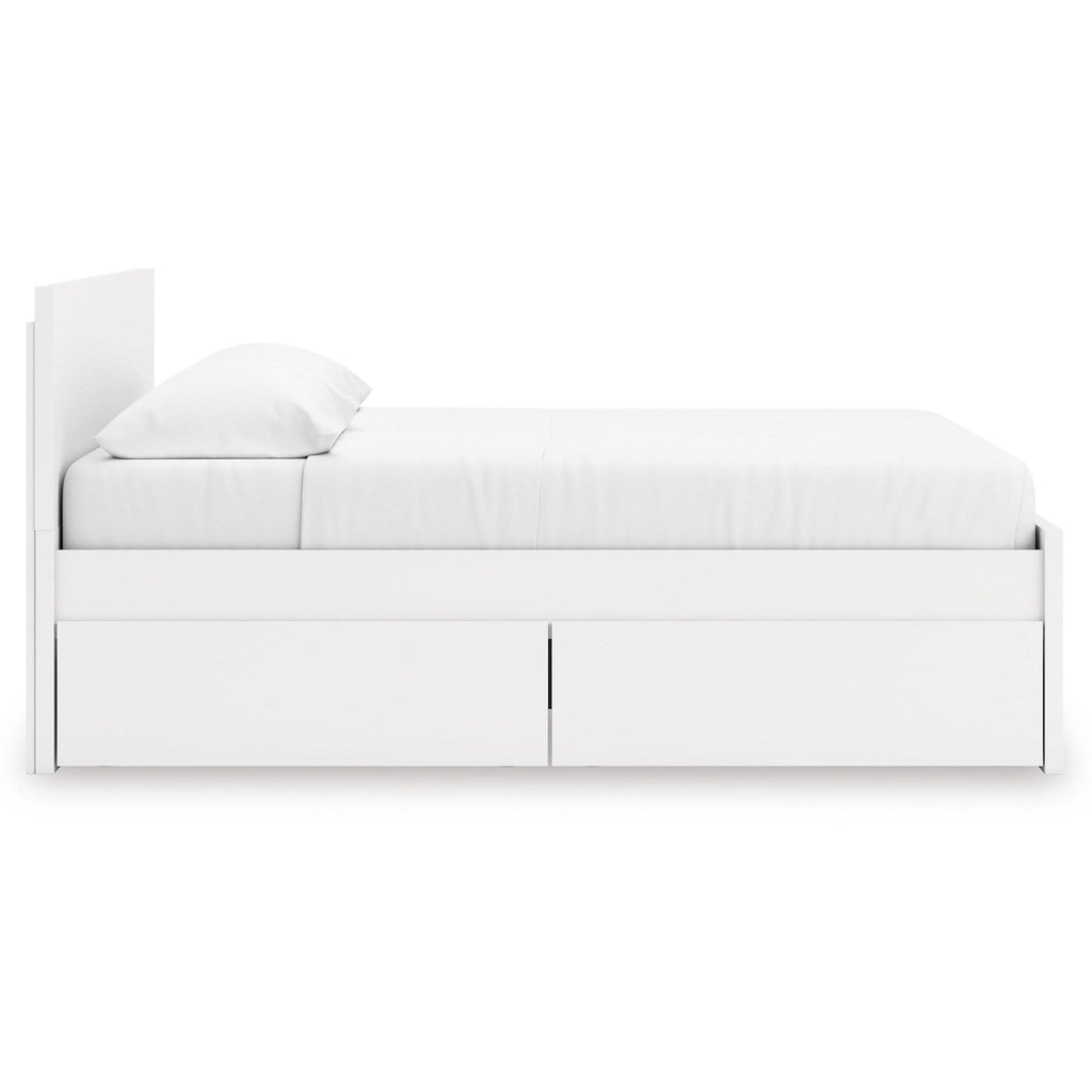 • Includes panel headboard, platform bed panels, platform rails, roll slats and 2 side storage drawers