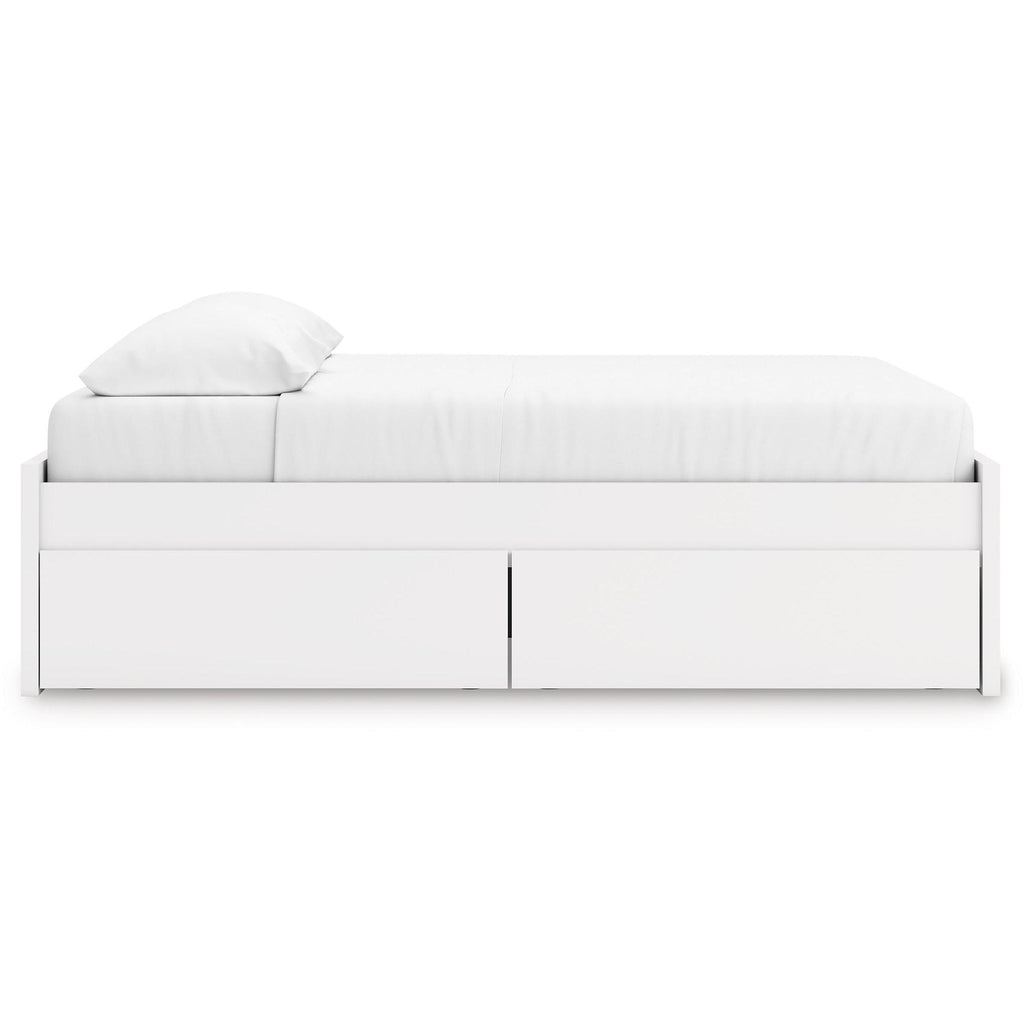 • Includes platform bed panels, platform rails, roll slats and 2 side storage drawers