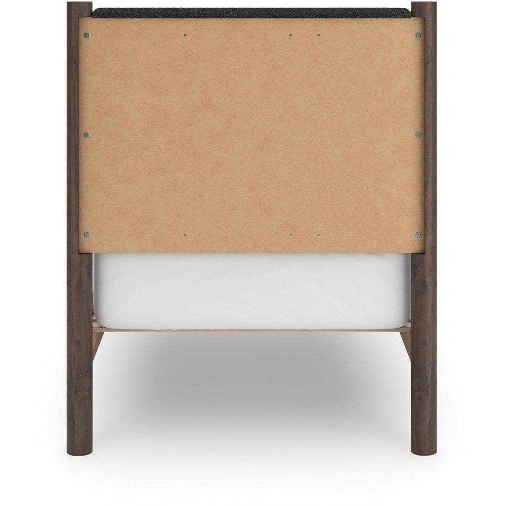 • Includes upholstered panel headboard, platform footboard with rails and roll slats