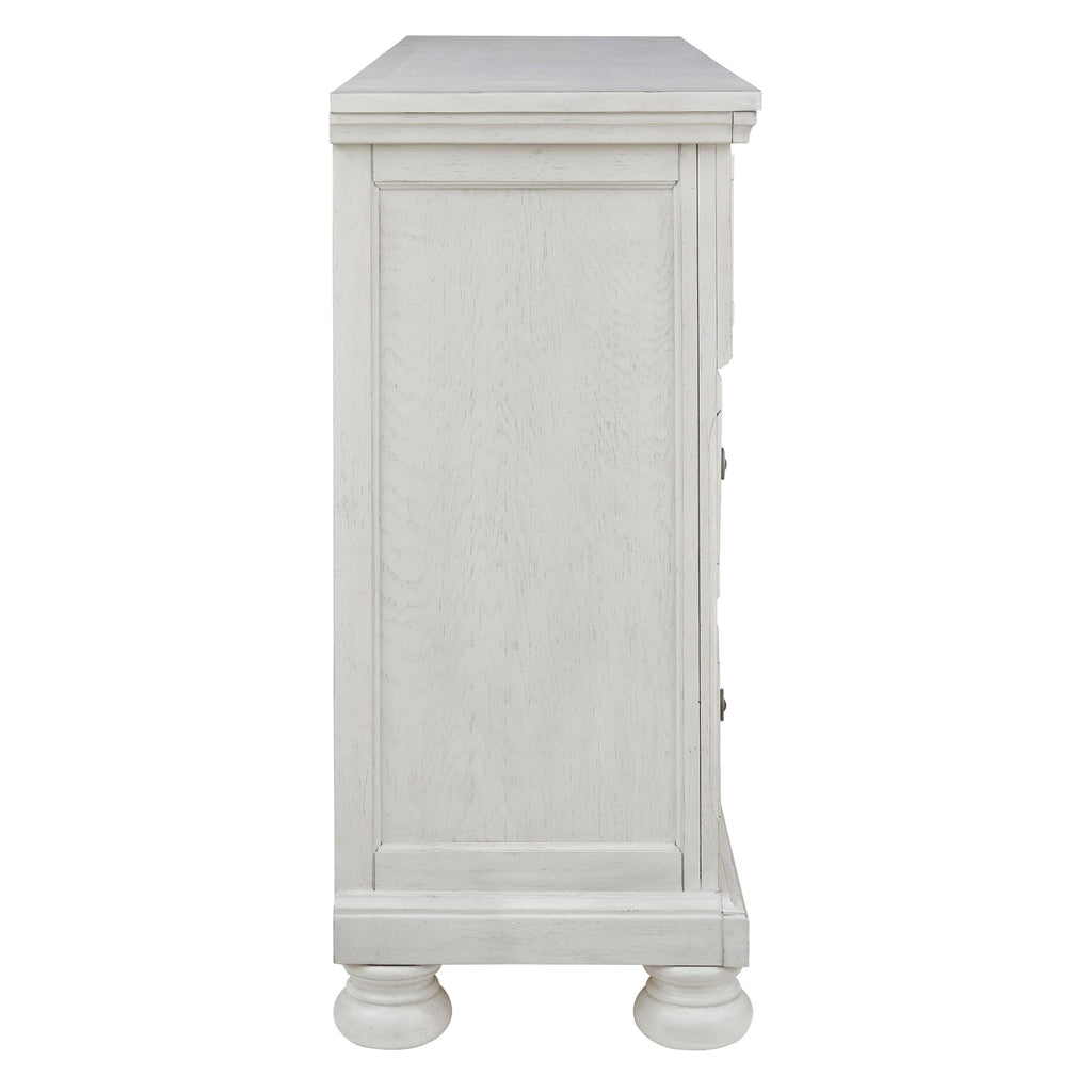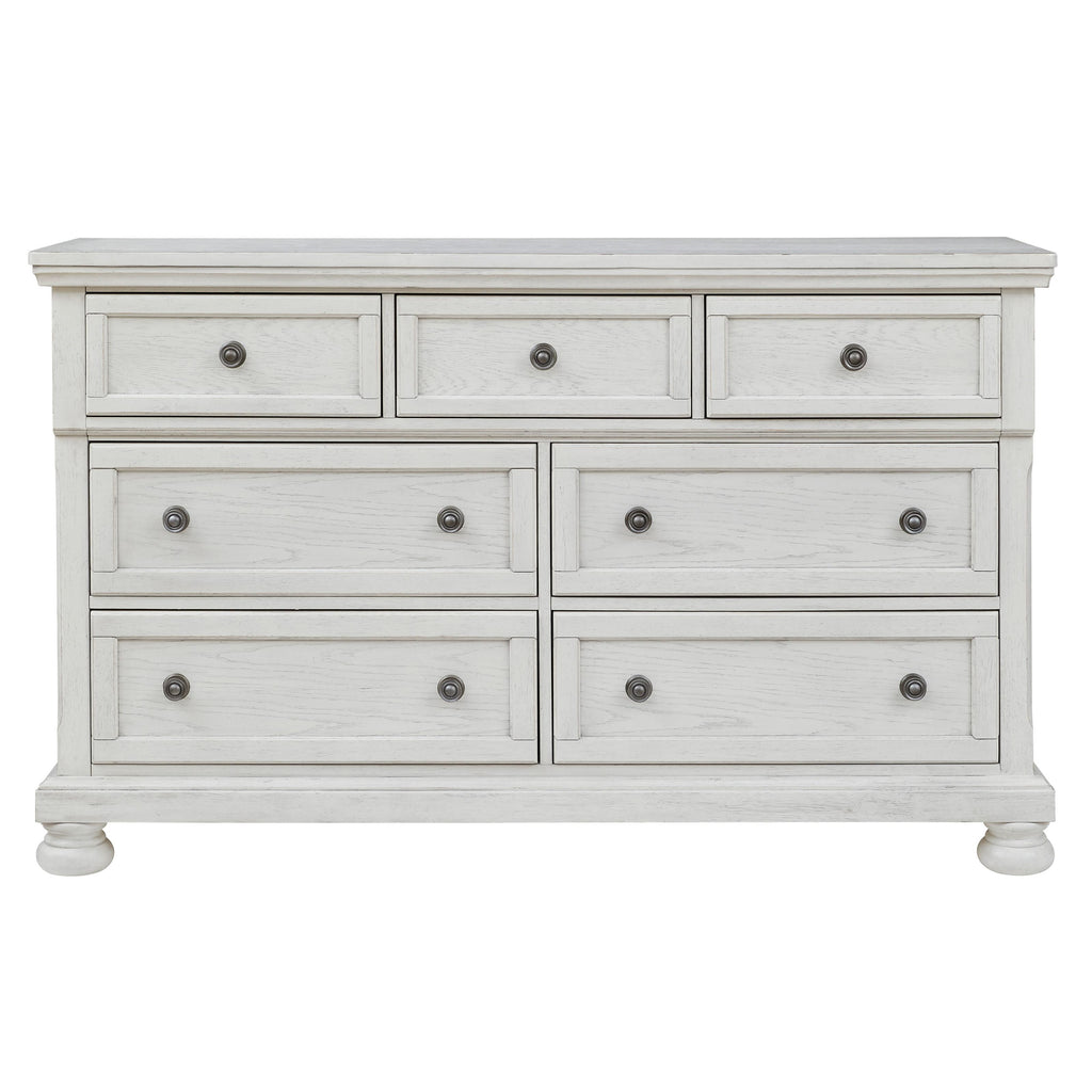 • Antiqued white finish with grain texture