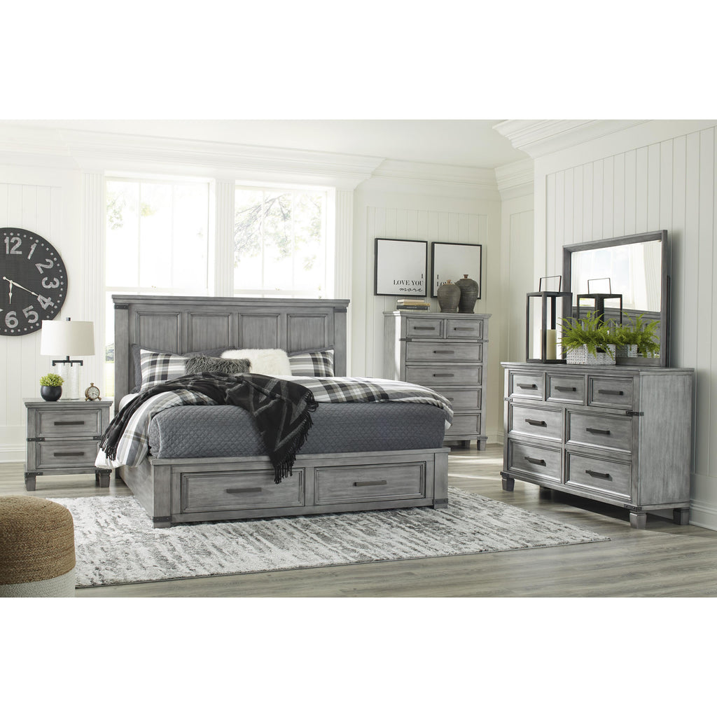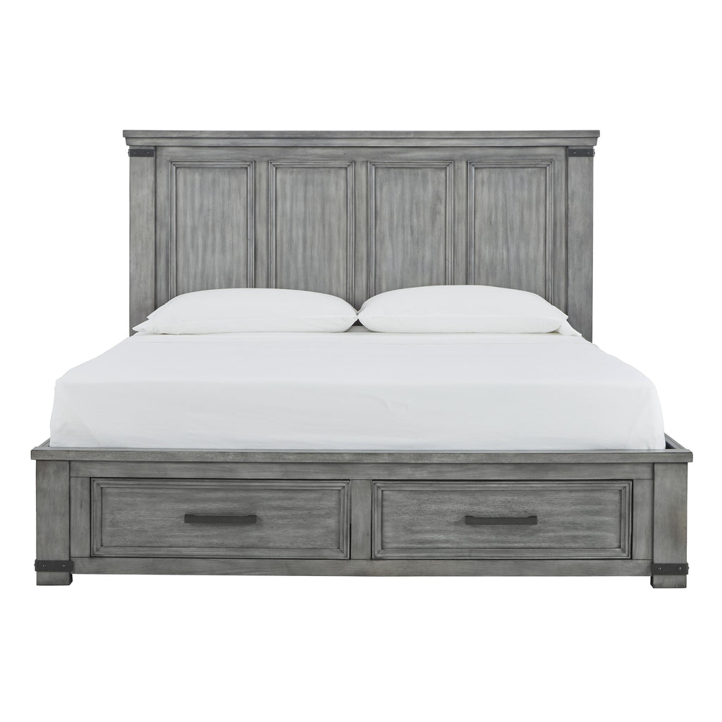 • Includes California king panel headboard, storage footboard and rails with roll slats