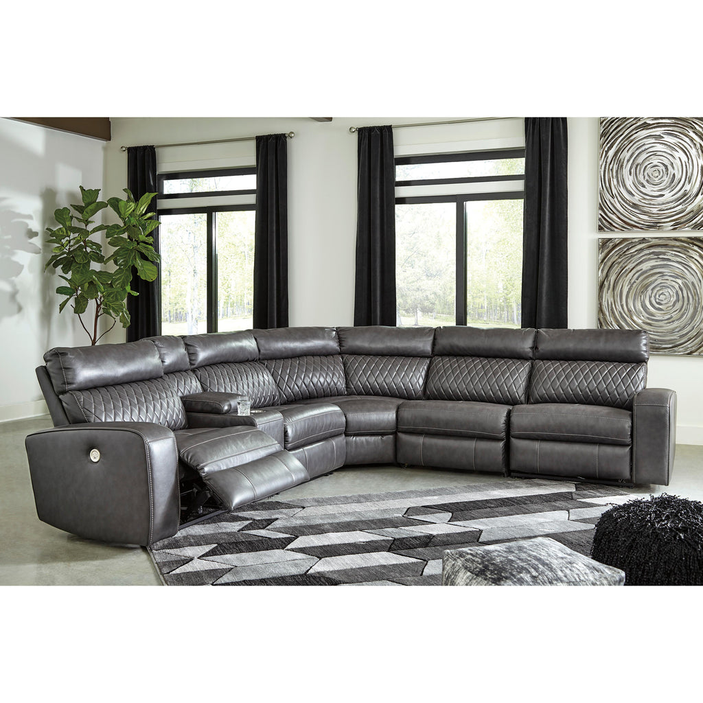 • Includes 6 pieces: left-arm facing zero wall power recliner, console with storage, armless recliner, wedge, armless chair and right-arm facing zero wall power recliner