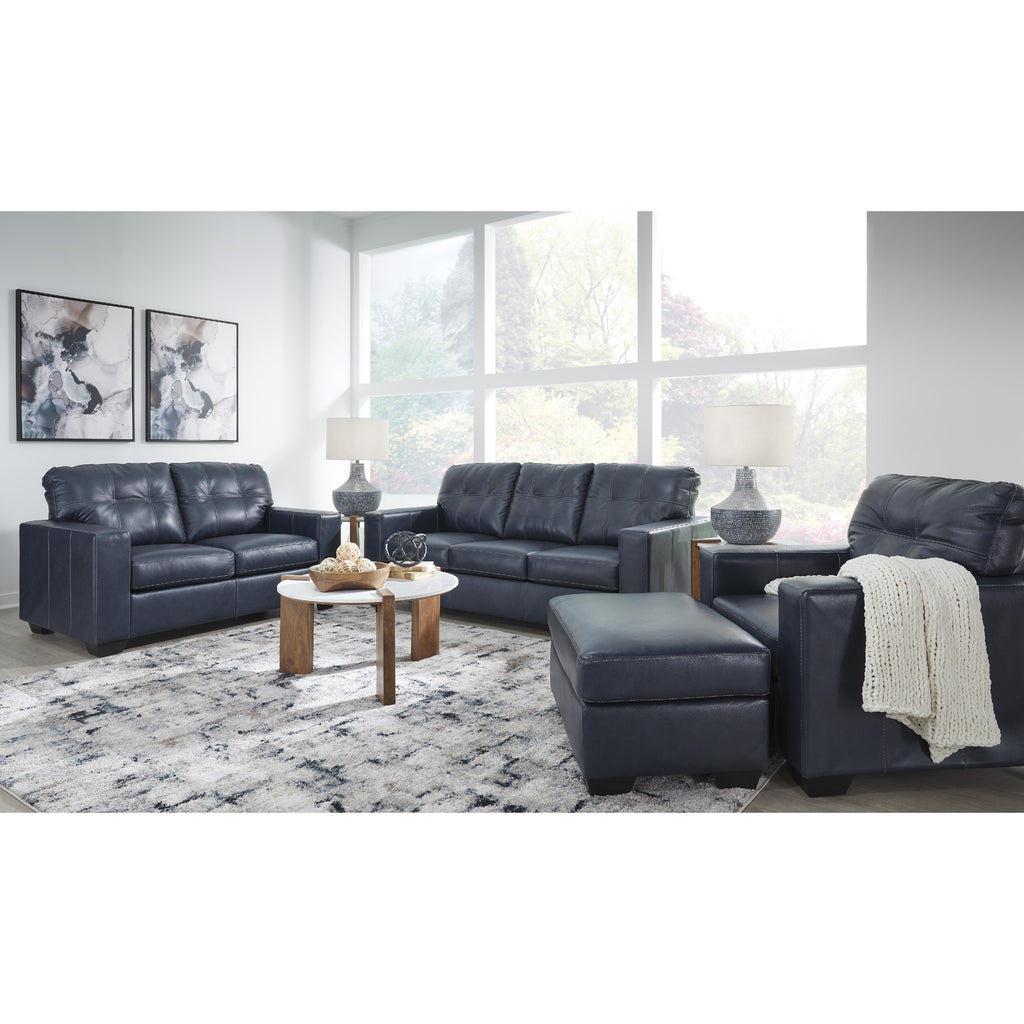 • Genuine leather covers the cushion top; skillfully matched faux leather covers the remaining areas
