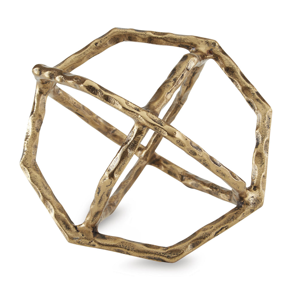 This sculpture is a cool and contemporary take on geometric design. Its interlocking rings, finished in a luxe antiqued brass... This sculpture is a cool and contemporary take on geometric design. Its interlocking rings, finished in a luxe antiqued brass tone, bring a sense of movement to your decor. An eye-catching complement to your existing accents, the boldly designed piece also makes a chic statement when staged alone. View more