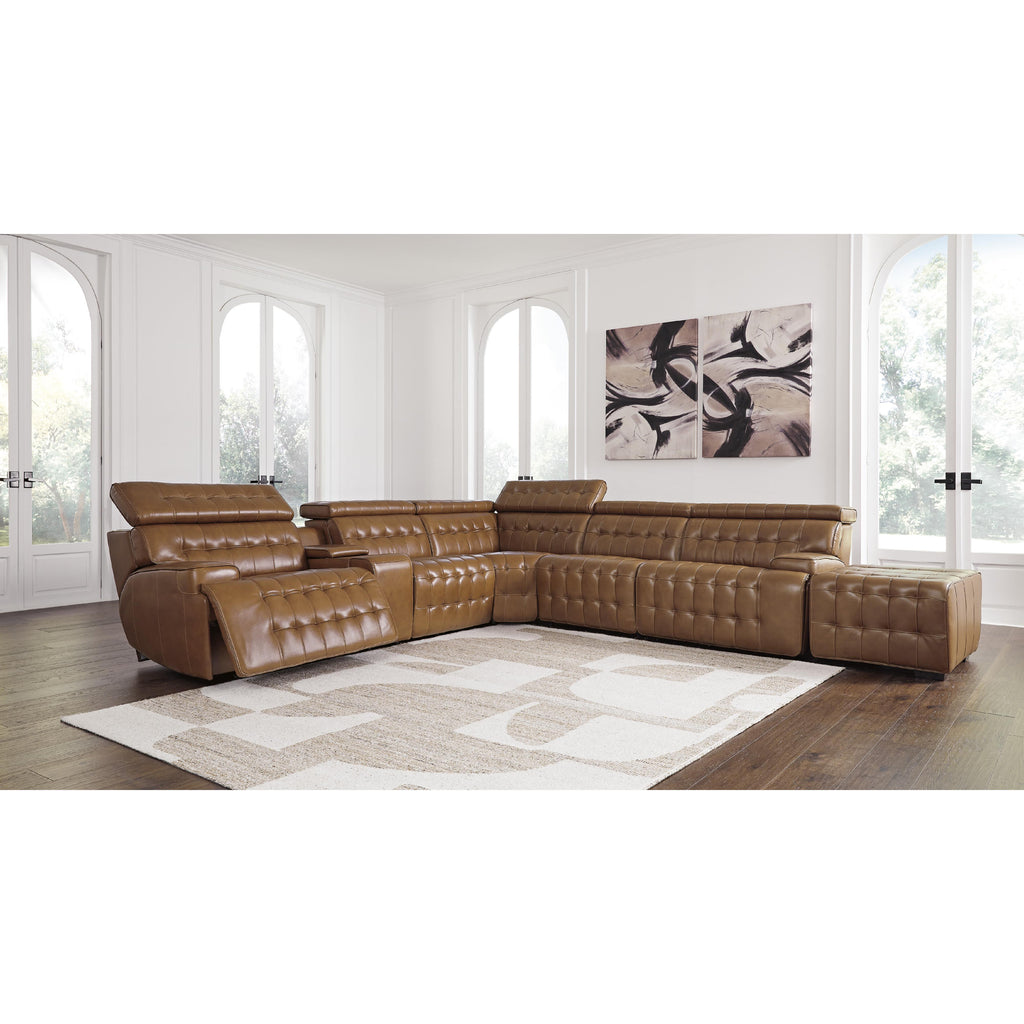 • Includes 6 pieces: left-arm facing power recliner, console with storage, power armless recliner, wedge, armless chair and right-arm facing power recliner
