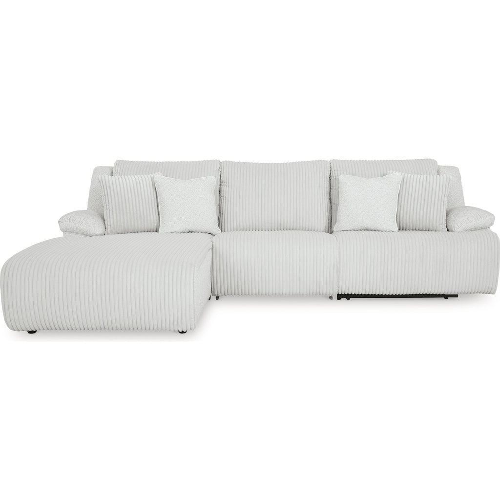 • Includes 3 pieces: left-arm facing press back chaise, armless chair and right-arm facing recliner
