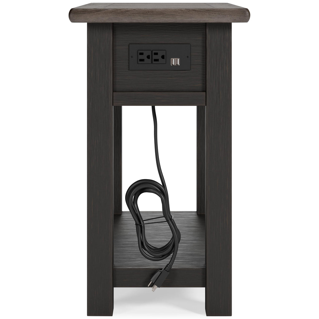 • Chairside end table features plank-styled top