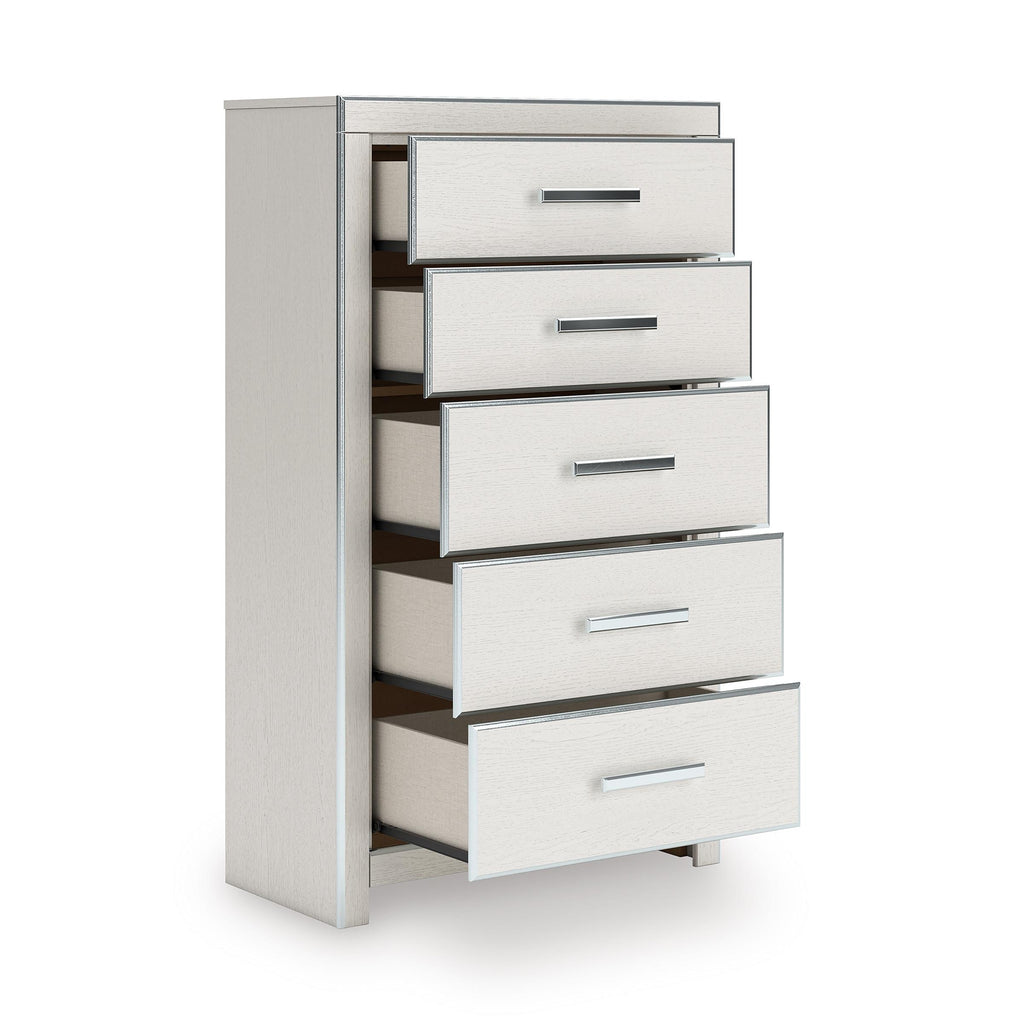 • Drawer interiors are lined with a faux linen laminate for a clean, finished look